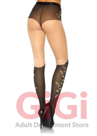 Spandex Sheer French Cut Pantyhose With Over the Knee Boot Detail and Floral Accent