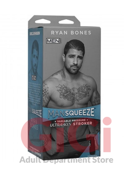 Tattooed Men.com stud Ryan Bones joins the Man Squeeze lineup with a variable pressure hard-case stroker molded directly from his body. Handcrafted in lifelike ULTRASKYN, Ryan’s Man Squeeze features a tight, textured interior that warms to the touch and feels just like the real thing. Play your favorite Ryan Bones scene and become his costar!