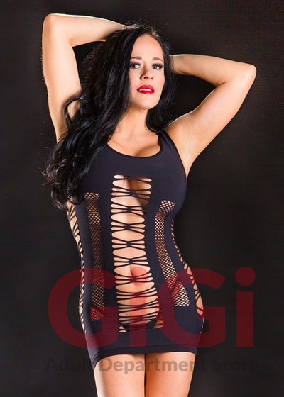 Strap dress with multi mesh designs.