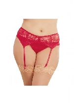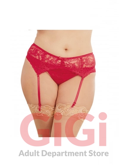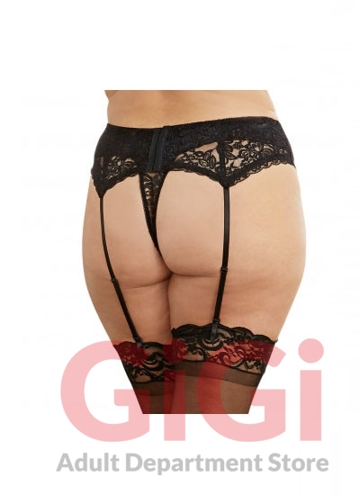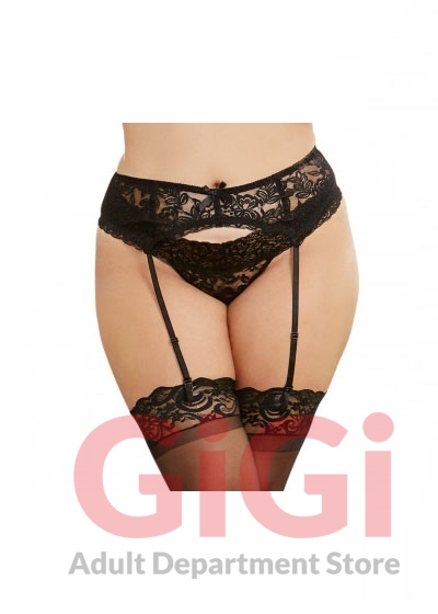 Adjustable hook and eye back closure for better fit. Fully adjustable garter straps. Stretch lace with scallop edge.
