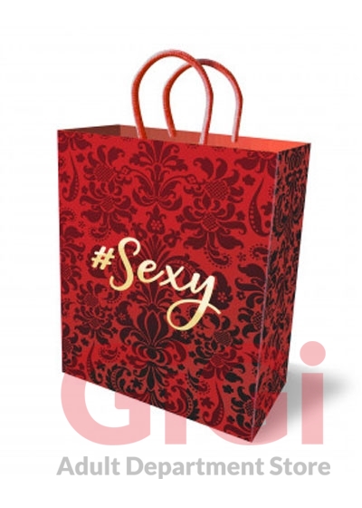 Unlike other gift bags, you'll be proud to wrap your naughty gifts in these playfully suggestive bags. They look expensive and feel amazing! High quality, unique luxury gift bags made of thick, sturdy cardstock paper with elegant woven handles. This red 10-inch gift bag with all-over floral pattern and a gold foil stamp phrase "#Sexy" imprinted on both the front and back is as fun to give as it is to receive.