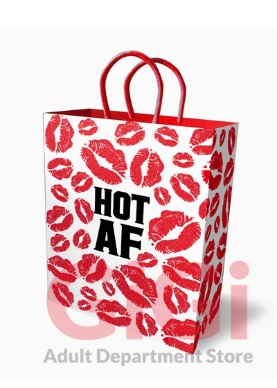 Unlike other gift bags, you'll be proud to wrap your naughty gifts in these playfully suggestive bags. High quality, unique gift bags made of thick, sturdy cardstock paper with elegant woven handles. This 10-inch gift bag with all over kisses and the phrase Hot AF printed on both front and back is delightful, as fun to give as it is to receive!