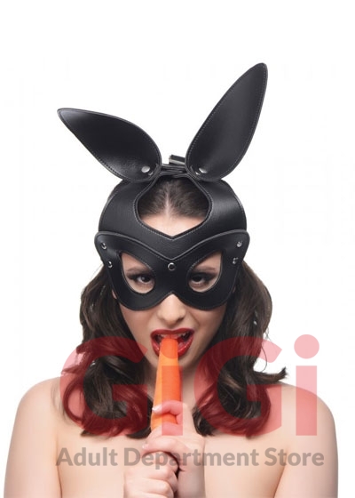 You may be an adorable bunny... but you can still be dangerous! Are you a precious pet or a wild animal? Slip into this ravishing rabbit mask for a rapturous romp with your mate, or a moon-lit gathering of many creatures. The vegan-friendly material may be cruelty-free... but that does not mean you to be! The nickel-free metal studs and the adjustable strap ensure that it is compatible with most heads and hares. Designed with raw sex appeal in mind, the ears and cut-outs are flattering and irresistible.
