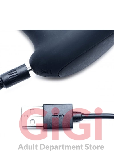 Savor every swell in your hole, but imagine the sensation when one of them starts to caress your prostate! The 7x P-Milker can be used with or without the remote control to cycle through 7 vibration settings that pulse and throb inside your hole. Meanwhile, a bead beneath the surface of the tip will move up and down, milking your sweet spot. The exterior portion has its own motor, as well, and will put textured pressure on your perineum, vibing you from the outside. Made of silky-smooth silicone, you can enjoy a seamless insertion. This premium, rechargeable pleasure tool is waterproof, non-porous, and phthalate-free. Avoid use with silicone lubricants.