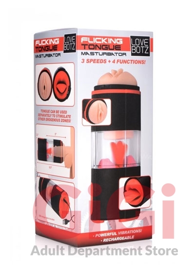 This vibrating masturbation stroker goes beyond fantasy, allowing you to penetrate a vagina and feel a tongue within! Treat your penis to 3 speeds and 4 functions of vibration from the vulva and flickering from the tongue. Just lube up and slip right in! You can even detach the tongue portion to use it separately on other parts of the body. The vulva is made of a soft material that feels ultra-realistic, with texture details within. The silicone tongue is firm but flexible. Experience vaginal and oral sex at the same time with this innovative male masturbator! Use with only water-based lubricants and clean with mild soap or toy cleaner to preserve the materials. A cap is included for easy storage.