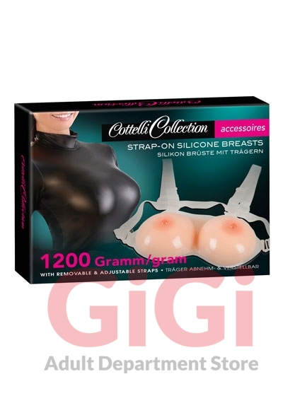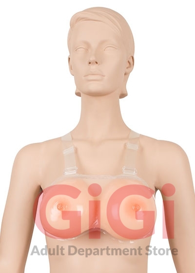 This pair of connected silicone breasts really stands out because they look and feel extremely realistic. The wide straps can be adjusted in size for perfect fit and comfort. Skin-coloured with nipples.