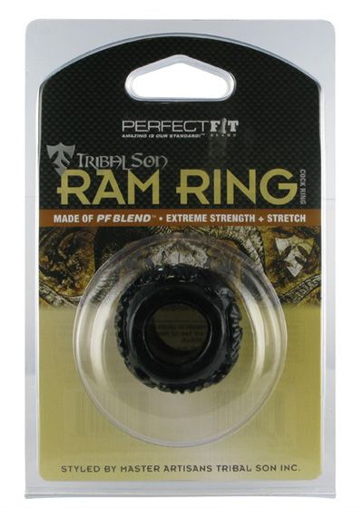 The Perfect Fit Ram Ring is designed by Tribal Son, a duo of master artisans known around the world for their silver jewelry designs. The highly styled ring can be used as a traditional cock ring or worn as a body adornment. It is made with our industry-leading proprietary materials, which makes it a superior long lasting durable ring that is extremely comfortable to wear. The Ram Ring is made of PF Blend, which is a mixture of Silicone and TPR and is available in black only. The Ram Ring is safe with all lubes. This product is not compatible with latex products. Wash thoroughly with mild soap and water. Perfect Fit Brand Products are sold, and intended for use strictly as adult novelty toys for entertainment. They are not intended for medical use and have not been clinically tested. No medical claims are warranted or implied by the use of these products.