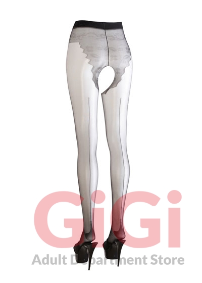 Classic suspender tights with a pretty panty part. The tights are also invitingly open in the crotch area too. The decorative seam and the Cuban heel give the illusion of endlessly long legs. 20 denier.
