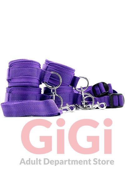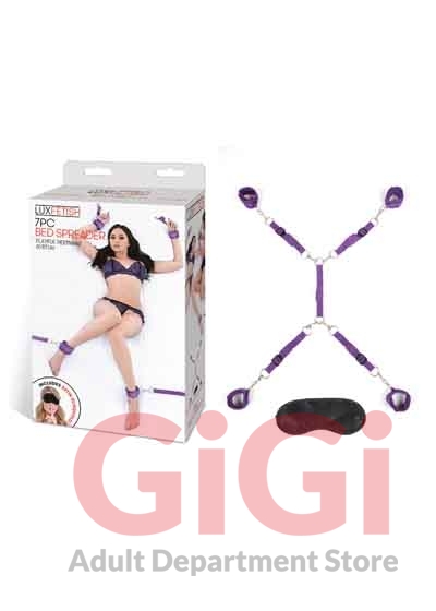 As fun as super-adventurous out-in-public, hotel room or other sneaky sex shenanigans can be, sometimes, there's just nothing like your own bed for down n' dirty doings. Helping turn your comfy haven of sleep and sex into a kink-ready playground of bound-up potential is Lux Fetish's 7 Piece Bed Spreader Restraint System in pretty purple.