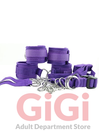 Allowing for all kinds of connectivity with cuffs, tethers and otherwise, the Spreader set contains four adjustable straps and a midpoint attachment band that slip discreetly underneath (or around) bed configurations, attaching, in turn to four included velcro (2 for wrists and 2 for ankles) cuffs with sturdy swivel clips. Connect the cuffs to O-rings attached to each strap, and play away!