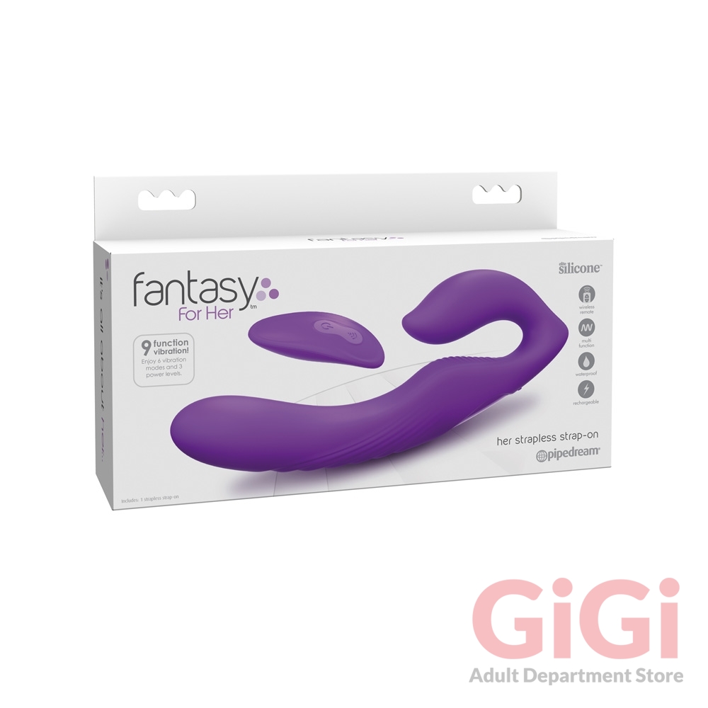 She had dreamed about having this kind of freedom! Her Ultimate Strapless Strap-On would grant her greater closeness during sex play with no straps to get in the way. She gently slid the tapered bulb inside her tender hole. It fit her perfectly as if it had been made just for her. She looked down and admired the slim silicone dildo extending effortlessly from her. Wow! She felt incredibly sexy and powerful. She pressed the button on the side of Her Ultimate Strapless Strap-On and then on the rechargeable remote control, which blinked to show it was ready. She pressed the button on the remote again, and two motors came to life, sending tingling vibrations to tickle her G-spot while intense vibrations thrilled her partner on the other end. She smiled knowing that she and her partner would both enjoy this arousing stimulation as she pressed the button again and again to enjoy 9 fulfilling vibration patterns. Partner penetration, sex play, pegging, foreplay—with Her Ultimate Strapless Strap-On she knew her pleasure encounters would always be incredibly exciting. It’s all about Her.