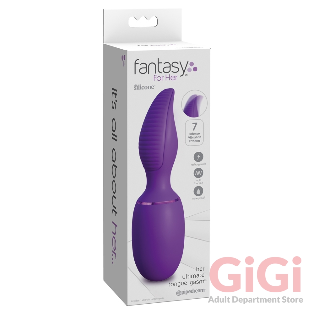 She closed her door and grabbed Her Ultimate Tongue-gasm. Ha! She smiled and she held down the button to start the powerful vibrations. The tip of the tongue began to quiver and pulse with a stream of intense vibration. The rounded design made it easy for her to guide the tapered tip to her clitoris—the core of her pleasure point. Wow! With a throaty gasp she held the flickering tongue against her clit and felt a stimulating warmth flood through her. She could feel herself getting highly aroused as she pressed the button again and again to enjoy 7 patterns of titillating vibration. She always craved oral sensation and Her Ultimate Tongue-gasm gave her the pleasures of oral sex whenever she wished. She was excited to try it on her lover and knew it would make their partner play irresistible! These sexy thoughts filled her mind with seductive fantasies as she inserted the flexible vibrating tongue tip to stimulate her G-Spot. The thrilling arousal of having her G-Spot intimately licked made her scream with delight just as her orgasm surged through her body, leaving her incredibly satisfied and purely fulfilled. It’s all about Her.