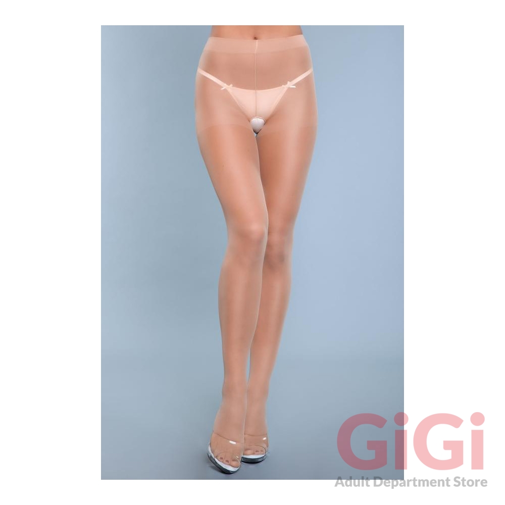 Sheer nylon crotchless pantyhose. (Thong not included.). 100%nylon.