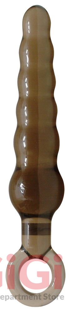 Drop by drop an incredible pleasures! Flexible, slippery plug in ripple design with sensitive tip and ring grip for safe thrusting action. Can also be used vaginally. Smoky black. Size: 19 cm, Ø 2-3.5 cm