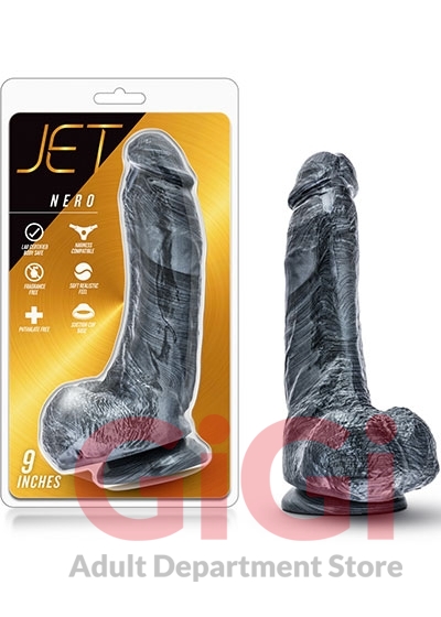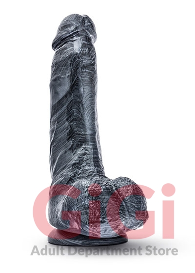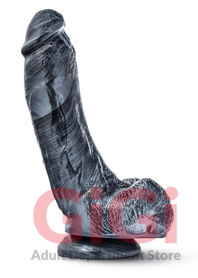This 9 inch realistic dong with a suction cup base has a unique Carbon Metallic Black finish that is sleek and menacing. Its sculpted in all its girthy glory to give you the most intense experience of your life. This monster has 7 insertable inches of manhood for you to master, with a unique curving shape that widens at the base to a girth of 2 inches.