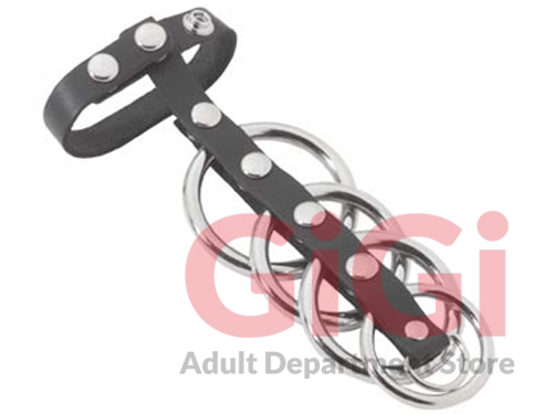 Metal cock rings. The large ring has an inner width of 2 inches and fits around the scrotum or the penis alone. The middle ring is 1.5 inches wide and the small rings are 1.25 inches wide.