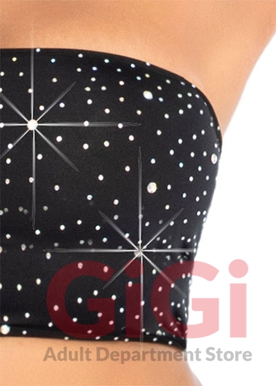 Light up under your lover's touch in this sexy sparkling bra set featuring a strapless opaque bandeau with rhinestone studded accents, a comfortable stretch fabric, and a matching mini skirt.