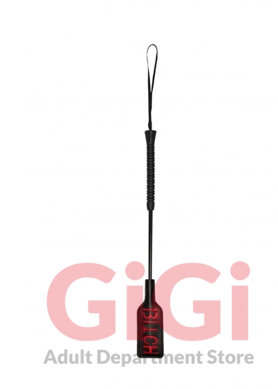 Leave a lasting impression on your partner. This short handled rectangular shaped crop is the perfect way to discipline your partner. Leave a lasting impression on your sub. The word BITCH is reversed so it will show up on their skin.