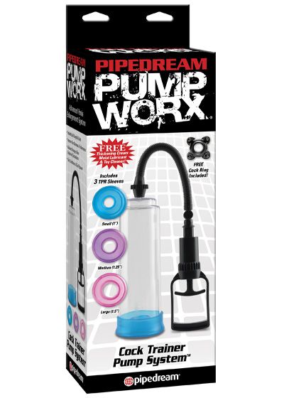Let the Pump Worx Cock Trainer Pump System help you to prolong ejaculation, just slide the included enhancement ring over your shaft until it's nice and snug. The tight squeeze will prolong cumming, help maintain your erection and extend the fun.