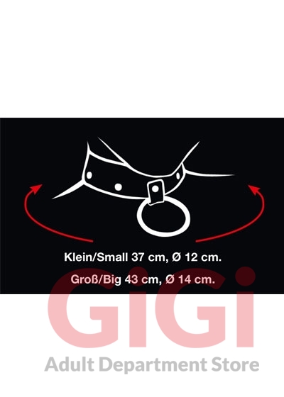 Silver coloured collar with an O-shaped ring. Can be closed using a metal peg. Metal. Includes a small hook.
