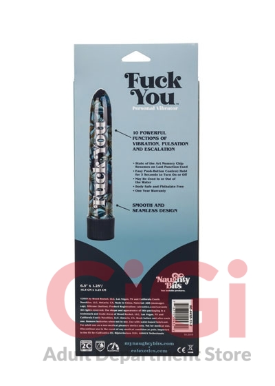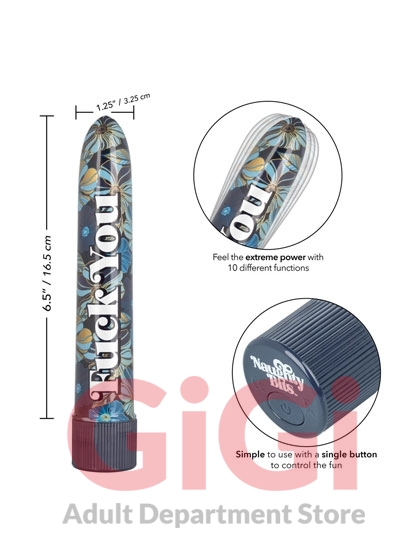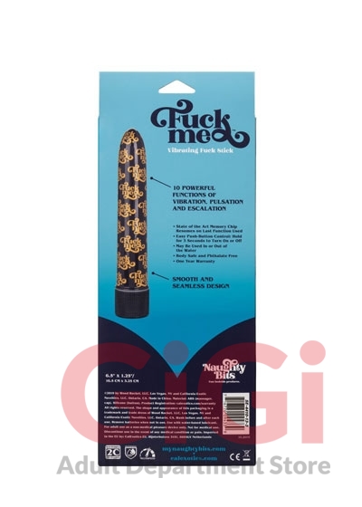Go all night long with the Naughty Bits™ Fuck Me™ Vibrating Fuck Stick, a powerful massager with a smooth, seamless body packed with 10 functions of thrilling vibration for knee-shaking stimulations. Get playful while you cycle through 10 indulgent vibration, pulsation and escalation functions with the easy-touch control button. While the sleek, seamless vibe body inspires dirty fantasies, the bold design and direct message on the shaft make this pleasure toy stand out in any nightstand. Power up your pleasure with 2 C batteries.The Naughty Bits™ collection is made to stand out in any nightstand with eye-catching designs and orgasmic features. The bold message and soft floral pattern of this gorgeous massager will make even the most stylish lover smiling before and after.