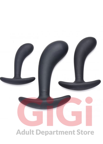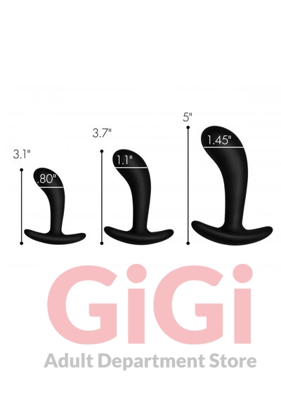 Curve into your backdoor with this delightful 3-piece of anal pleasure. This trainer set includes 3 different sized plugs for backdoor beginners and veterans alike to enjoy – warm up with the smallest plug and train your way to the biggest when you feel you’re ready. Made with premium silky smooth silicone that is phthalate and body safe so you can train your holes with no worries. The velvety exterior is a dream to squeeze your holes on, and is perfect for entry level anal players exploring new ways to play. The slight curve is designed to pinpoint your favorite spots so you can easily stimulate during play, Use these with your partner to practice clear communication and explore your anal desires! The ergonomic base neck is slim and comfortable so you can hit your deepest spots without irritating the entrance of your hole. Compatible with water based lubricants only. Avoid use with silicone or oil based lubes to prolong the life of this trainer set.