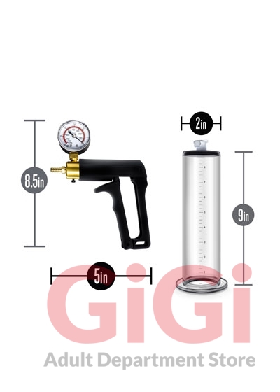 The VX7 Blush Performance VX7 Advanced Male Enhancement Pump System brings engorgement and heightened sensitivity to your penis. It comes complete with an airtight cylinder, silicone tubing, a professional-grade brass trigger pistol with a vacuum pressure gauge, and a quick release valve for your peace of mind. The cylinder is also detachable if you're seeking to hold the suction while you play. The VX7 Vacuum Penis Pump is compatible and interchangeable with other Performance pumping accessories.