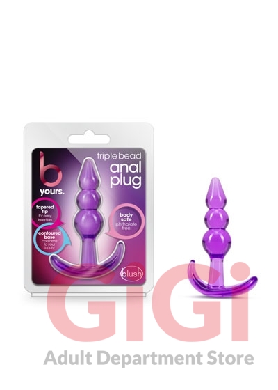 The B Yours Triple Bead Anal Plug will maximize comfort and sensation! The three-bulb design adds an extra POP as you insert this soft, flexible anal plug. With a safe anchor base, it's easy to wear and comfortable to sit on. B Yours plugs are body safe, phthalate-free, and easy to clean.