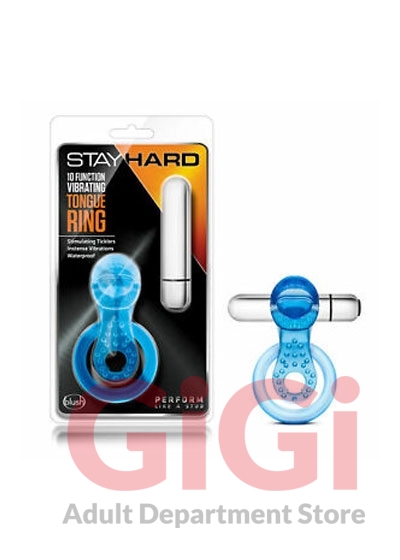 Stay Hard 10 Function Vibrating Tongue Ring - Blue