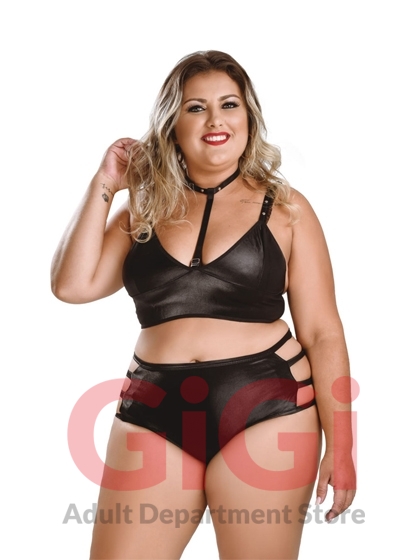 Bondage Set Top W/ Removable Collar & Pants Red/Black Plus Size