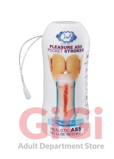 Cloud 9 Pleasure Anal Pocket Stroker Water Activated Beige. No lube needed. Just add water. Pleasure Pocket Stroker is compact and ergonomically designed to fit into your hand. Each pleasure pocket stroker features a water activated velvety smooth realistic feel masturbator with a ribbed tunnel for your pleasure.