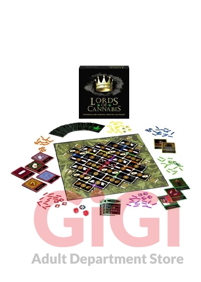 Lords Of Cannabis Game is a game of conquest for the stoner set, Lords of Cannabis challenges two to four players to conquer the lucrative marijuana market by using strategy, risk, trading, and influence. Players use colored tunnels to build their way across the board, avoiding pitfalls like law enforcement, and gaining rewards like becoming the leader of the mafia. A great party game, Lords of Cannabis is the self-described Strategic game of reaping, corruption, and conquest - build, trade and steal your way to becoming the true lord of cannabis! Type: Game Weight: 1 pound, 14 ounces in package. Game Includes: 125 Stash Cards, 38 Crop Cards, 2 Dice, 6 Building Tiles Per Color, 6 Over-sized Reference Cards, 2 Reward Cards, 1 Sheriff Badge, 24 Numbered Chips, and 14 Tunnels Per Color. Lords Of Cannabis Game from Kheper Games. Kheper Games is based in Seattle, Washington. Please note this adult game has been discontinued and quantities are limited.