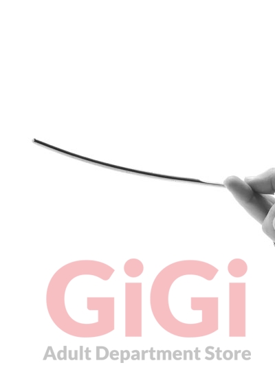 In solid, body safe stainless steel, the 6mm Urethral Dilator is naturally extremely firm and quite weighty. It's nice and long with a smooth rounded insertion point and easy to hold flattened handle. There's a very slight upward curve to the shape - this mimics the path of the urethra as it angles toward toward the prostate gland.