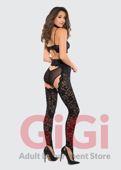 Be the one who got away in Freya wild lace chaps, panty and bra set. A must have for the free spirited, wild at heart woman. The delicate sheer bra is bordered with scalloped eyelash lace detailing and is attached to a lace collar by cleavage enhancing straps. This playful sheer high waisted panty has an ultra low scooped out back with a touch of ruch mischief. The lace chaps are exquisite in fit, lengthening the leg silhouette by reaching the front of the foot. This look can be taken out of the boudoir by pairing it with an oversized black sweater that falls off one shoulder.