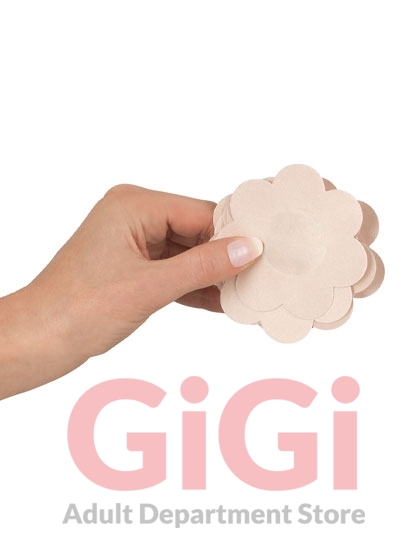 Soft and skin-coloured stickers with adhesive coating to stick on the nipples. Made out of textile and silicone. They also cover stiff nipples and the areola reliably. In a floral shape, Ø 7 cm. 6 pairs.