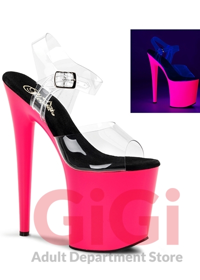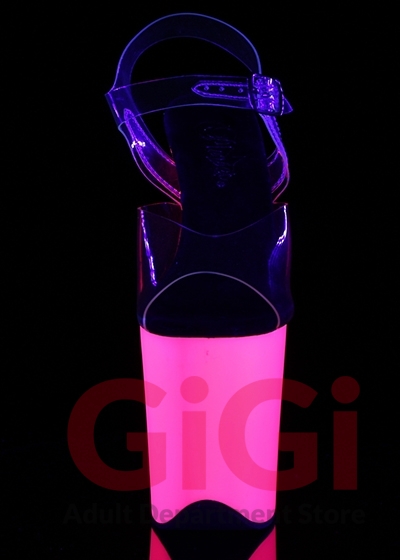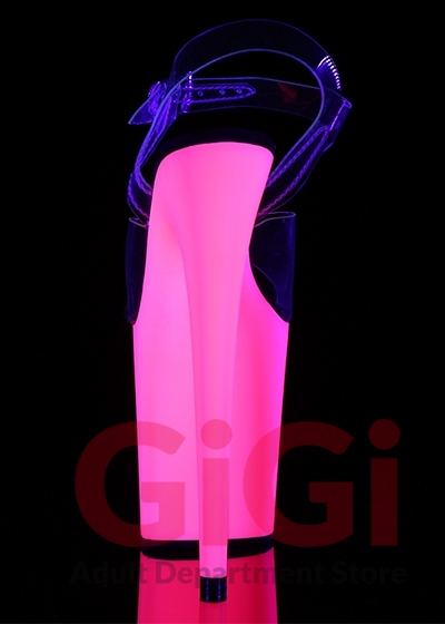 8" Heel, 4" PF Ankle Strap Sandal w/Neon UV Reactive BTM