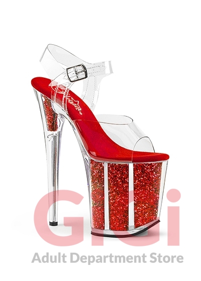 Pleaser 8" Glitter Ankle Strap Sandal Platform Heel Red (US Size 10)