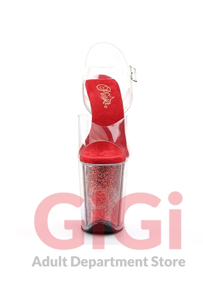 8" (200mm) Heel, 4" (100mm) Platform Ankle Strap Sandal w/ Glitter Inserts in the Platform Bottom