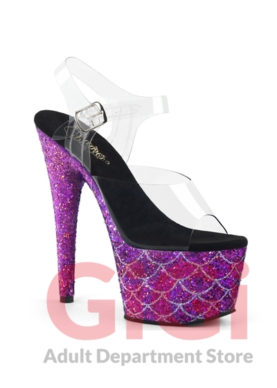 Pleaser 7" Mermaid Glitter Ankle Strap Sandal Platform Heel Purple (US Size 7)
