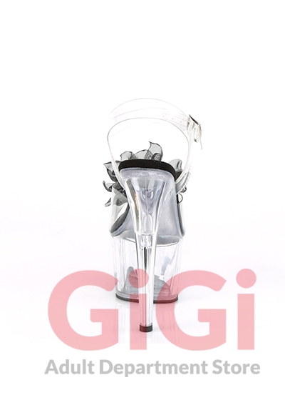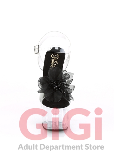 7" (178mm) Heel, 2 3/4" (70mm) Platform Ankle Strap Sandal Featuring Sheer Organza Flower w/ Beads at Toe