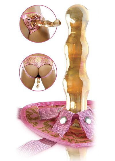 A truly gorgeous combination, the No. 36 dildo is an breathtakingly good looking, perfectly curvy iridescent dildo plus a beautiful, user friendly O-ring harness in a matching pink and gold brocade fabric. Both pieces can be used alone, but together, they're spectacular. The soft, secure nylon harness comes pre-assembled, so all you'll need to do is slide the dildo through a stretchy pink ring at the front and tighten up the straps around hips and waist.