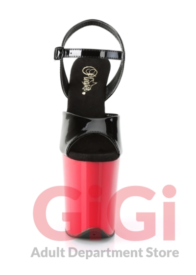 Pleaser 8" Exotic Dancing Ankle Strap Sandal Platform Heel Blk Pat/Red (US Size 8)