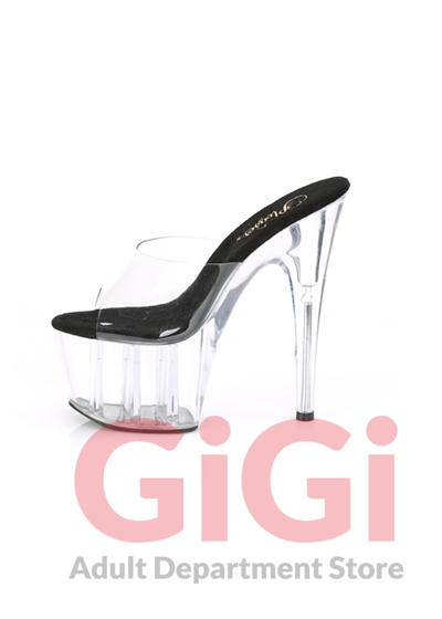 Pleaser 7" Exotic Dancing Platform Heel Clr-Blk/Clr (US Size 7)