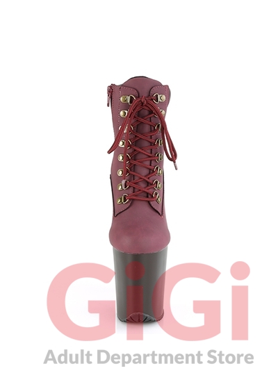8" (200mm) Heel, 4" (100mm) Platform Lace-Up Front Bootie Featuring Padded Collar & Rubber Lug Outsole, Inside Zip Closure