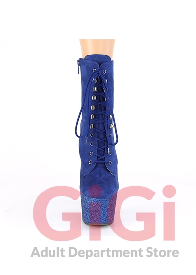 Pleaser 8" Glitter Lace-Up Front Bootie Ankle Boots Platform Heel Blue (US Size 8)