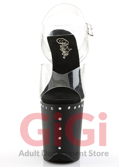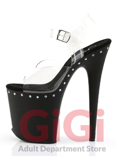Pleaser 8" Stiletto Heel Platform Ankle Strap Sandal Clr/Blk Matte US Size 8