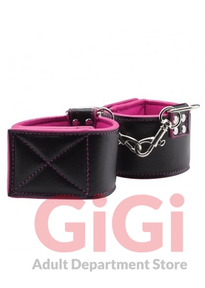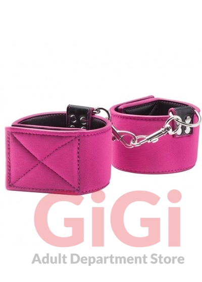 These cuffs are designed with a PU leather and a neoprene side, this allows you to choose the material you will feel on your skin by simply turning the cuffs around. The Neoprene side is colored and the leather side is black for a rougher look! Also they feature a Velcro lock which means they will fit almost everyone, and a snap-closure system to assure it’s interchangeable with other bondage toys!
