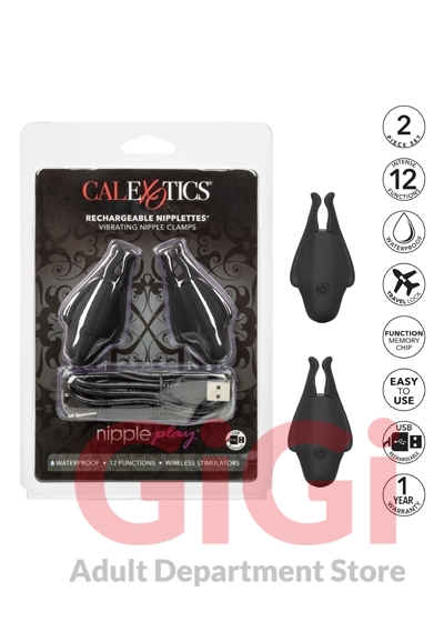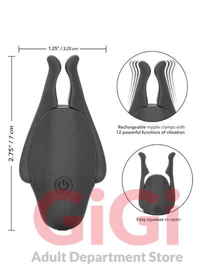 Blur the borders between pleasure and pain even further with the game-changing Nipple Play® Rechargeable Nipplettes®. This daring designer nipple clamp set features 12 independently controlled functions of vibration, fully adjustable clamps and USB rechargeable battery. Clamp these multi-use teasers to your body and enjoy every rush of stimulation as you flicker through the powerful functions of vibration at the touch of a button. As the tension tightens, the tingles intensify with every touch of the button for the ultimate in nipple stimulation toys.