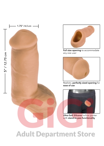 The Packer Gear™ 5-Inch Ultra-Soft™ Silicone STP is a unique packer designed with a hollow shaft and wide opening for FTM Stand-to-Pee functionality. Designed with function and comfort in mind, the sculpted packet fits easily into your favorite harness and premium Ultra-Soft™ silicone flexes with the body. The soft, pliable silicone, life-like feel and ivory skin tone make it the perfect probe for all-day wear and use.