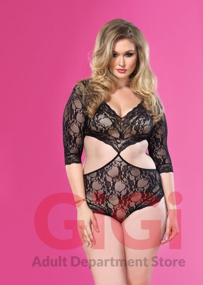 Sexy deep V sweetheart neckline with floral lace, triangle cutout and a flirty open back design. Flirts well with a garter belt and nude or pink lips. Featuring 3/4 sleeves and a high back with a luxe fit. This teddy is whispering your name.